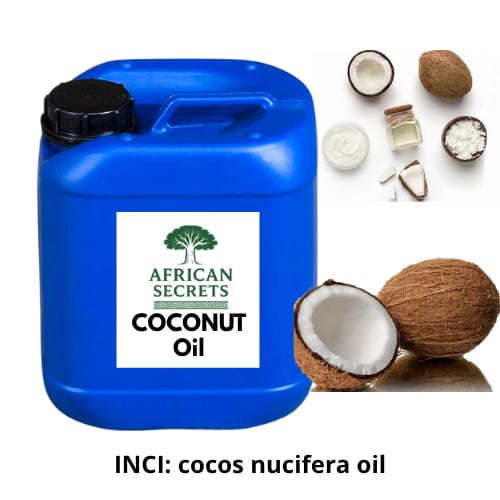 virgin coconut oil, African coconut oil, cold-pressed coconut oil, MCT-rich oil, cosmetic grade coconut oil, coconut oil supplier Africa, premium coconut oil wholesale, Dakimo Corporation coconut oil, African Secrets coconut oil, coconut oil for skin, coconut oil for hair, edible coconut oil B2B.